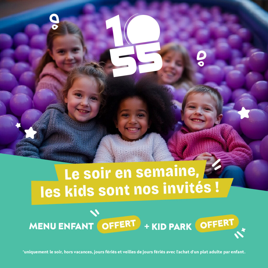 Vous cherchez une idée de sortie en famille qui fasse plaisir aux enfants… et aux parents, sans exploser le budget ? Le 10•55 vous gâte avec une offre spéciale à partir du 9 mars : Menu enfant OFFERT + kid park OFFERT