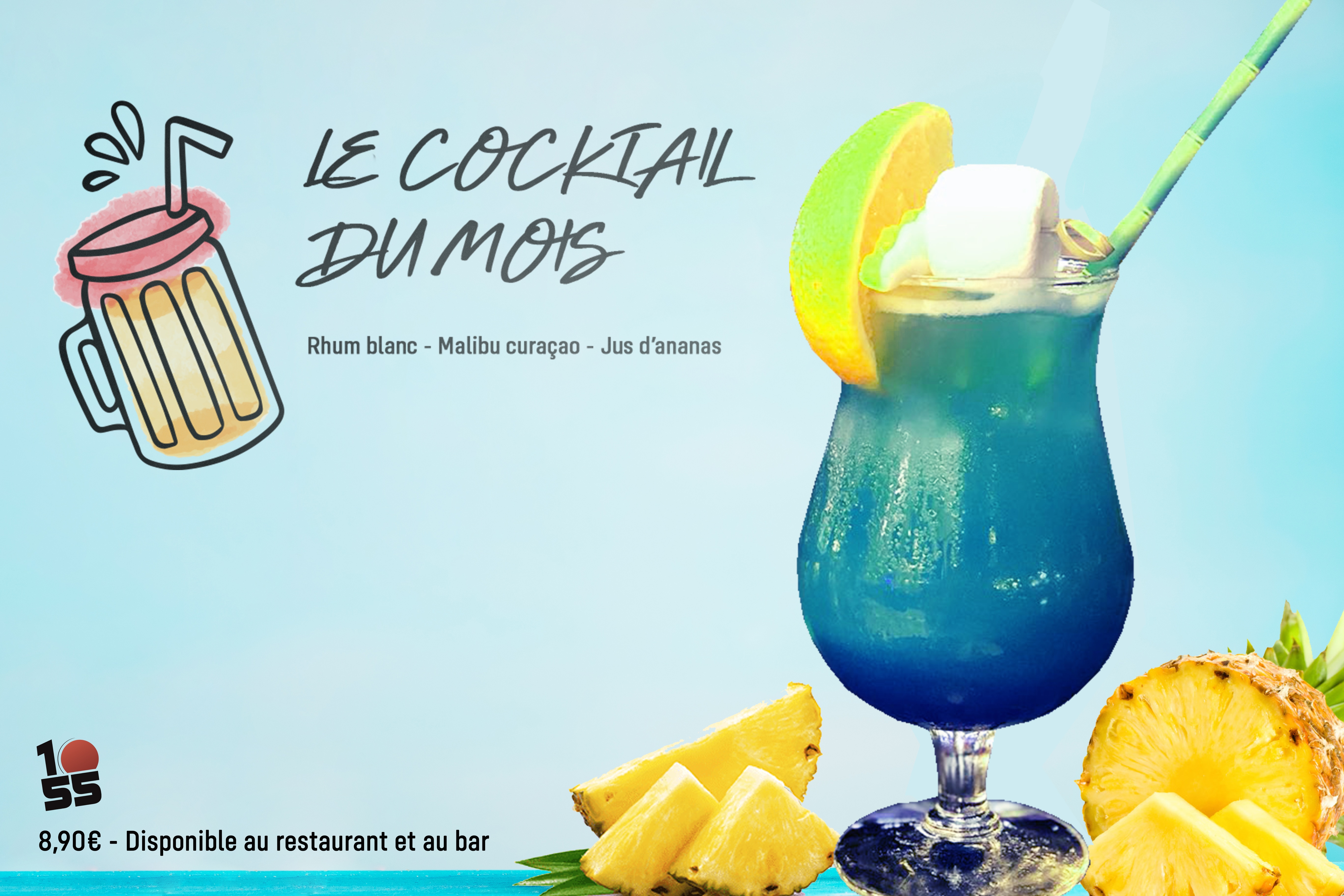 Chaque mois, découvrez le cocktail du 1055 ? En Mars, nous vous proposons un cocktail à base de : Malibu …