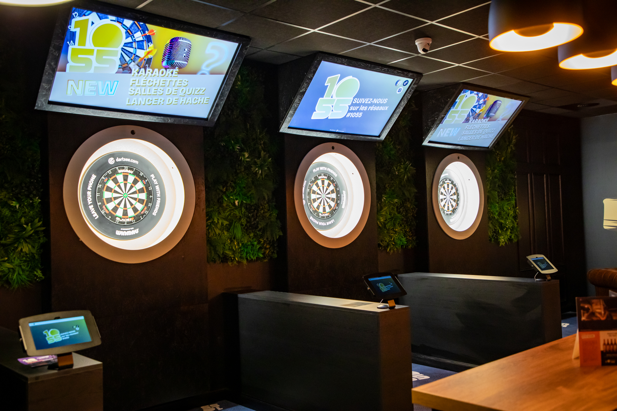 Découvrez les activités de l’espace lounge au 10·55 de Chalon-sur-Saône : karaoké, fléchettes et salles de quizz